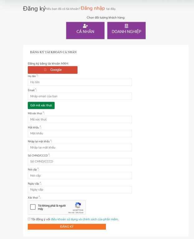 Bước 2: Đăng ký tài khoản