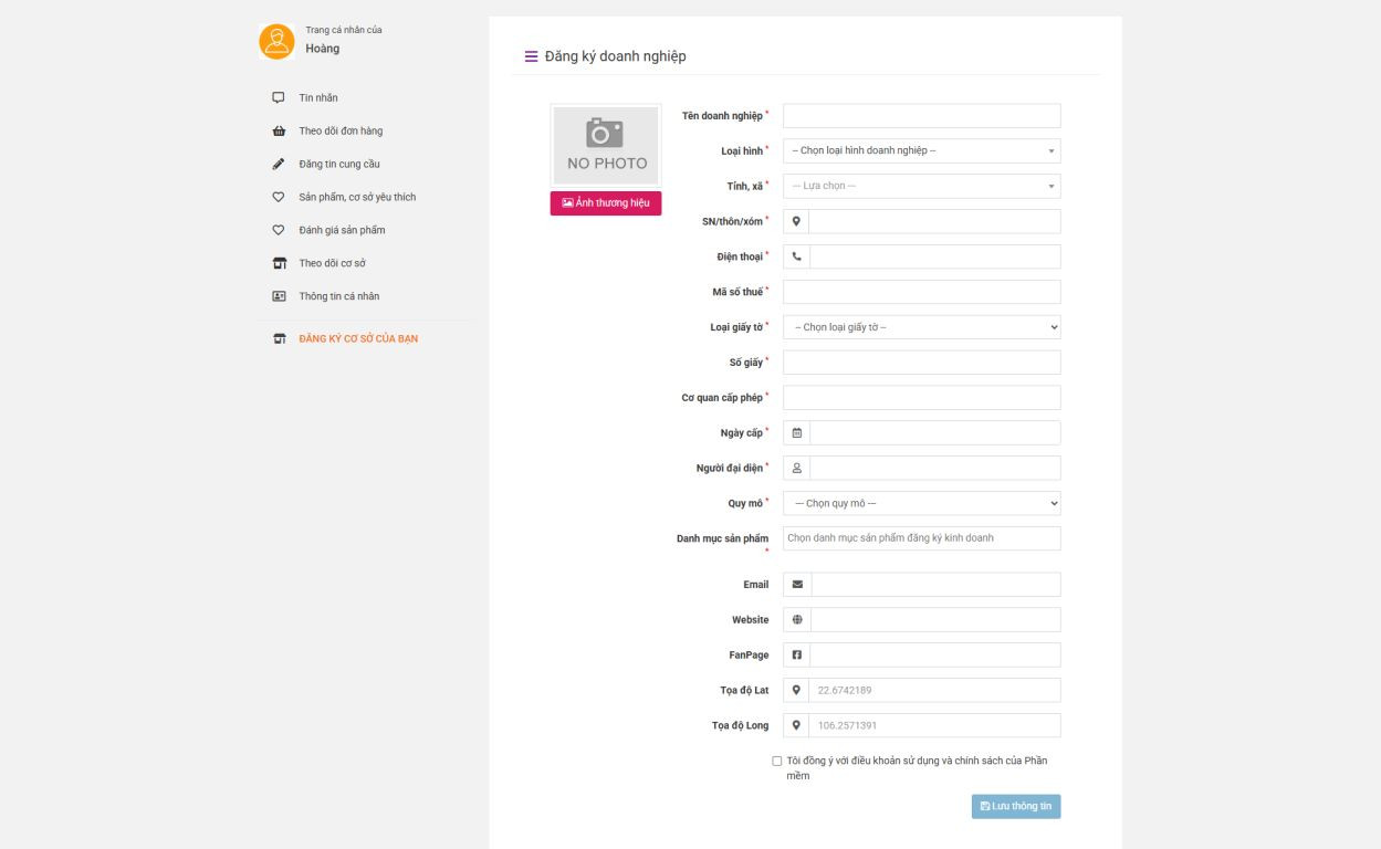 - Tên cơ sở/đơn vị, loại hình (doanh nghiệp/hộ kinh doanh/cá nhân);