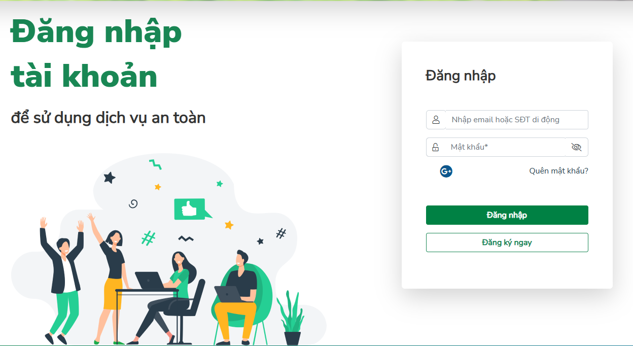Sau khi hoàn tất đăng ký, người dùng sử dụng email/số điện thoại và mật khẩu để đăng nhập hệ thống và sử dụng các chức năng của Sàn.
