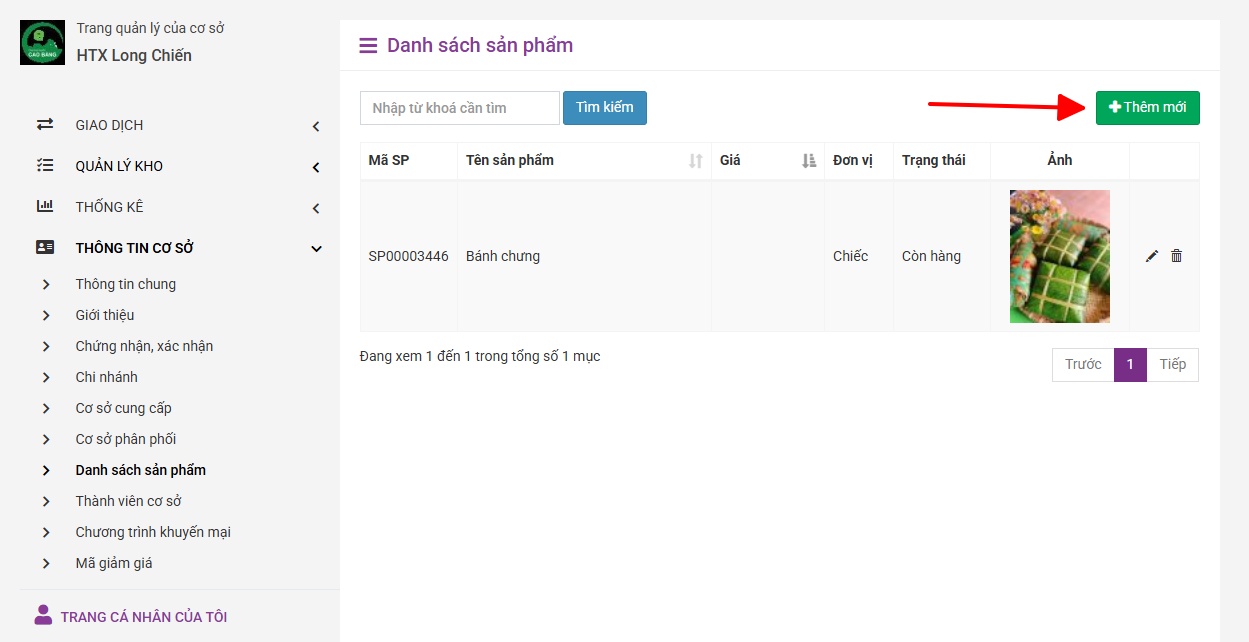 Bước 4: Chọn chức năng “Thêm mới” để đăng tải thông tin sản phẩm/dịch vụ.