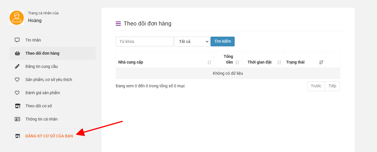 Bước 3: Lựa chọn chức năng “Đăng ký cơ sở của bạn” để đề nghị mở gian hàng trên Sàn.